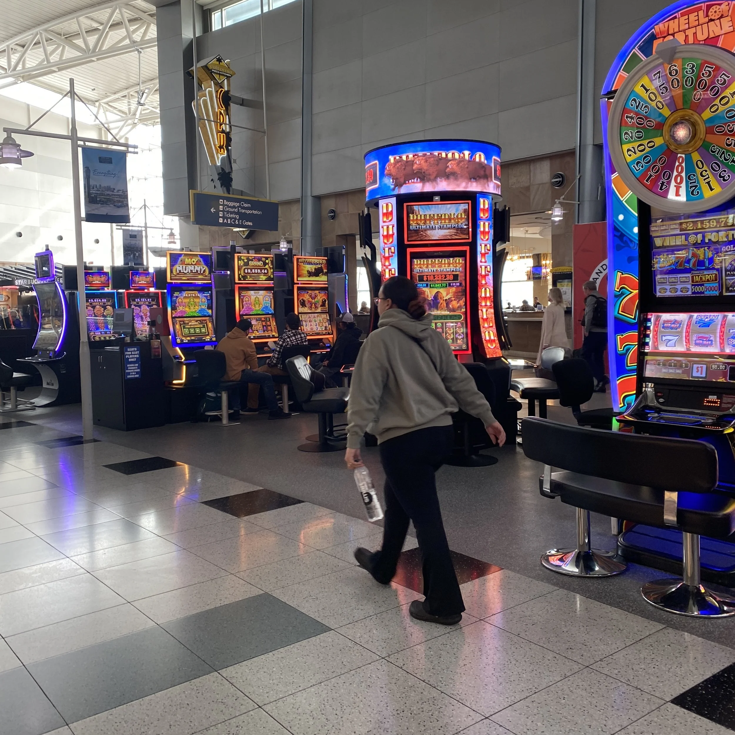 On arrival, I sent my sister photos of the slot machines at the airport. She replied, “These people [the airport] must hate humanity.” I always look forward to her delightful analyses of the bizarre.