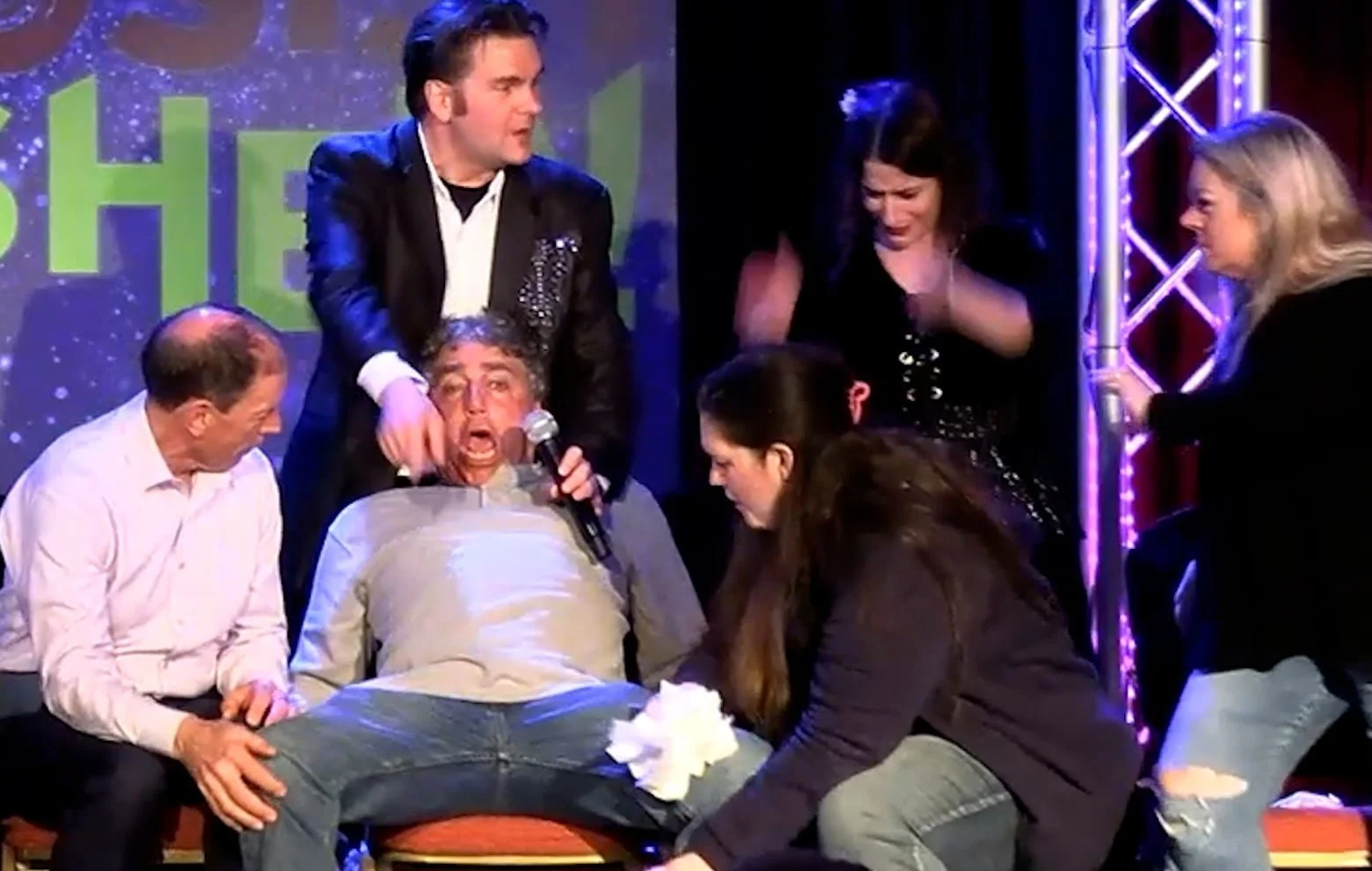 This photo was actually taken from the hypnotists’s website since cell phones weren’t allowed during the performance.