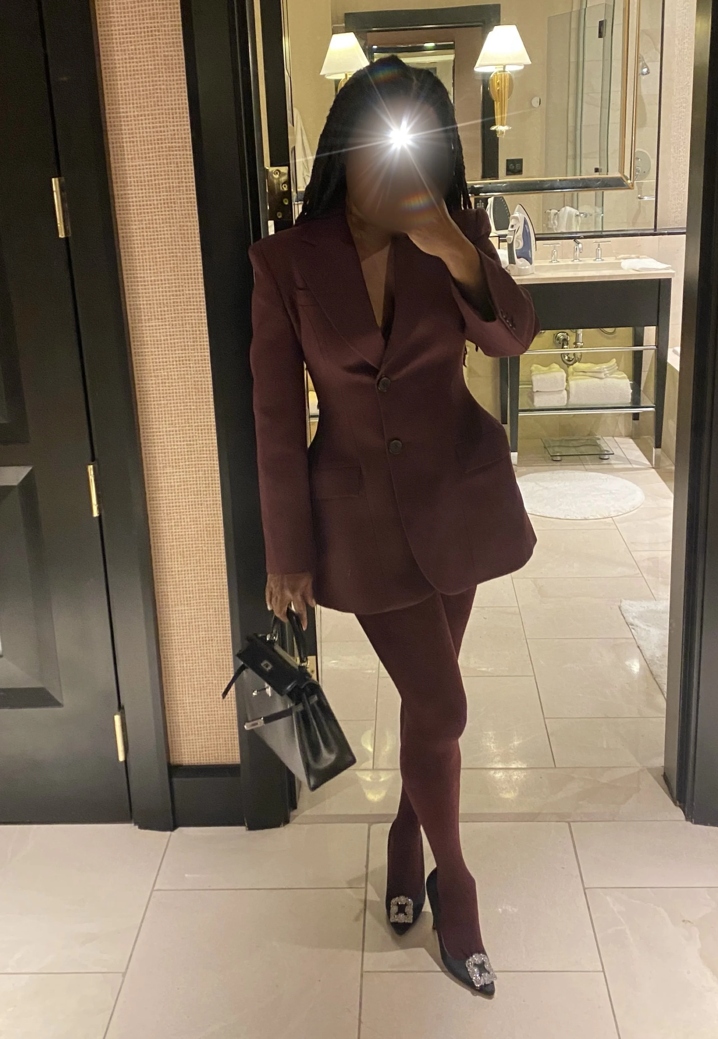 A while later, it was time to get dressed for dinner at Cipriani. I love getting dressed up. I’d been pining after this burgundy blazer/dress for over a year. It’s simply exquisite. It costs a little over $800 and Vegas gave me the perfect reason to finally buy it.